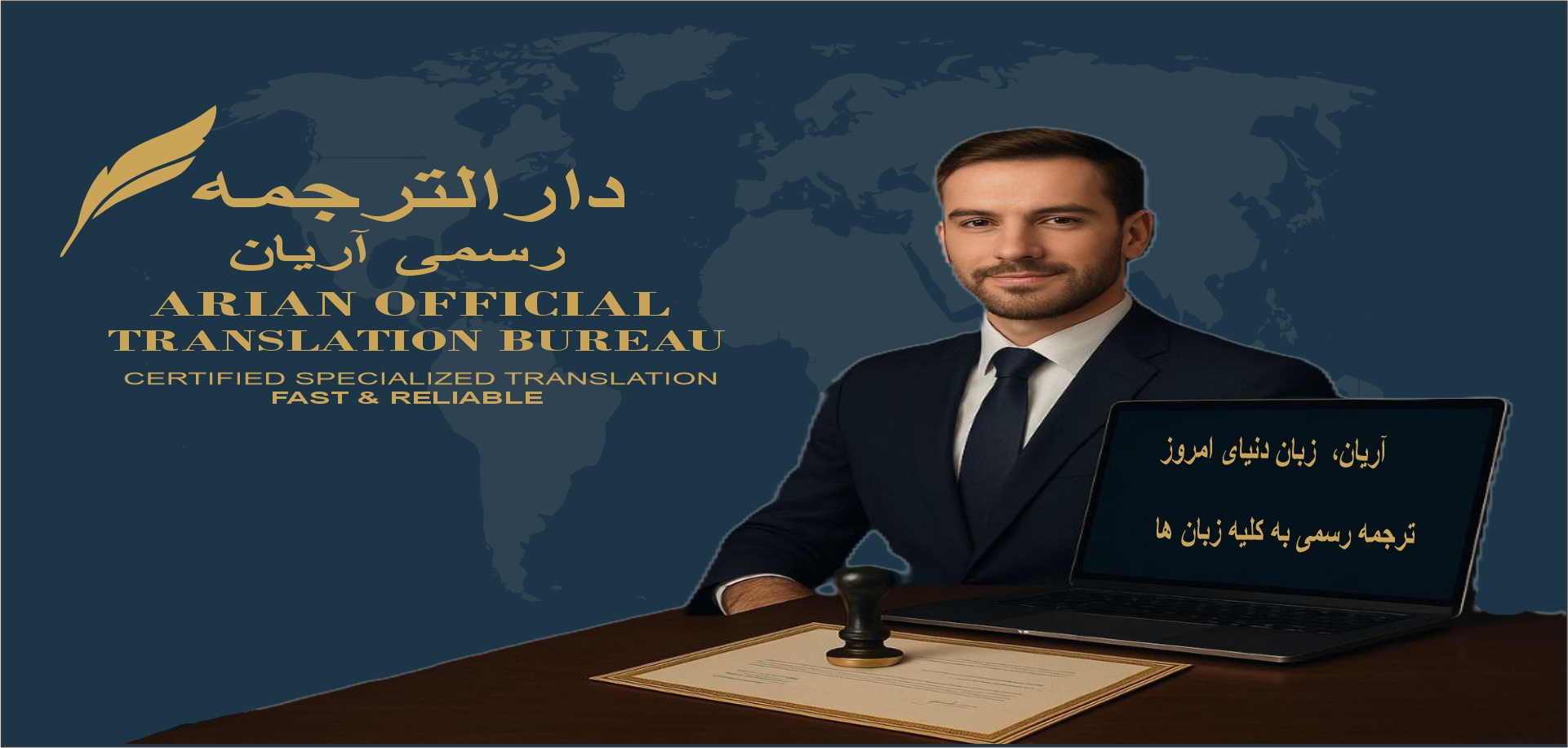 ترجمه رسمي مدارک با تائيديه وزارت دادگستری و امور خارجه در دارالترجمه رسمی آريان